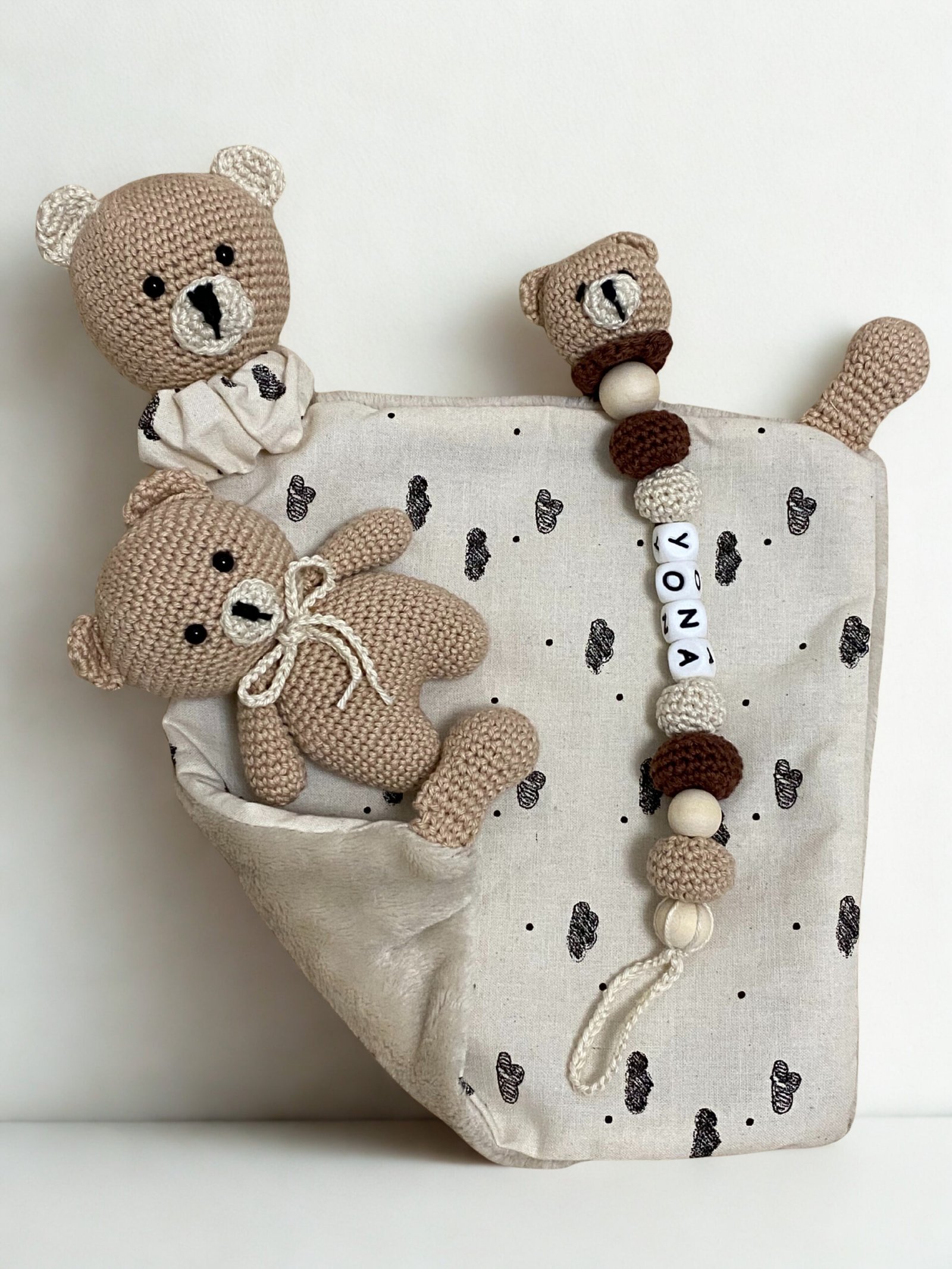 Découvrez des doudous crochet, attaches tétine personnalisées et décorations de chambre bébé