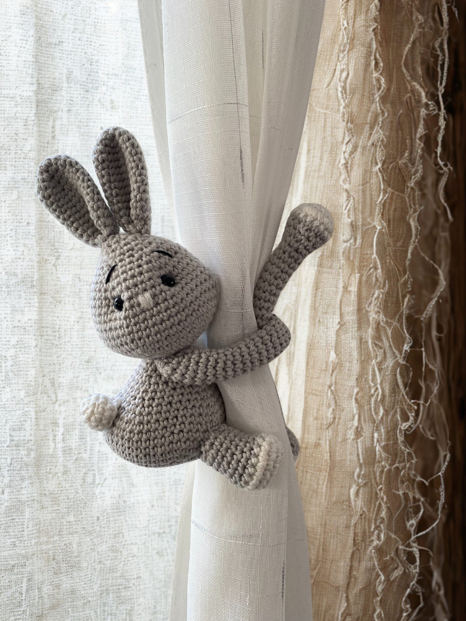 Cette petite lapin ne se contente pas de tenir vos rideaux : elle apporte chaleur, personnalité et une touche artisanale unique à votre intérieur.