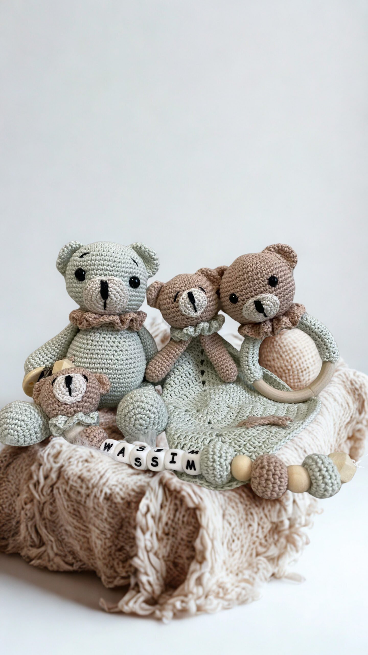 La personnalisation avec prénom transforme ce doudou crochet en un cadeau de naissance unique. Ajouter le prénom de l’enfant crée une pièce singulière et chargée d’émotion. Cette option est particulièrement appréciée pour célébrer une naissance, une baby shower ou un baptême.