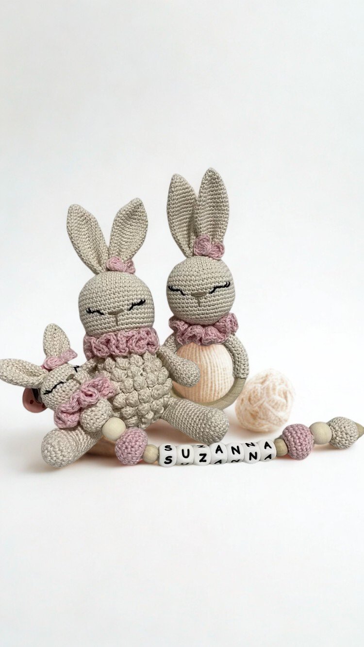 doudou crochet attache tétine personnaliséeCoffret bébé lapin