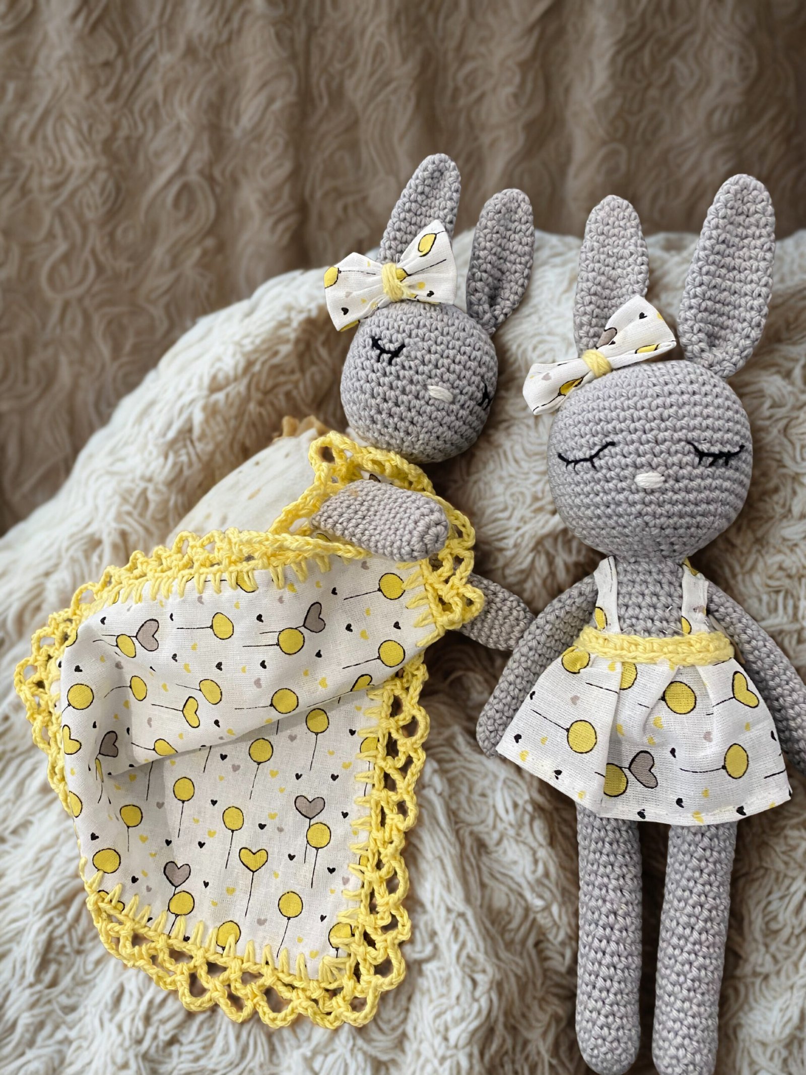 Ce doudou crochet lapin personnalisé est une création artisanale pensée pour accompagner bébé dès ses premiers instants. Entièrement confectionné à la main, ce doudou crochet allie douceur, esthétisme et authenticité dans un design inspiré de la nature. Ses tons gris et jaune délicats s’intègrent parfaitement dans une chambre bébé aux couleurs naturelles et apaisantes.