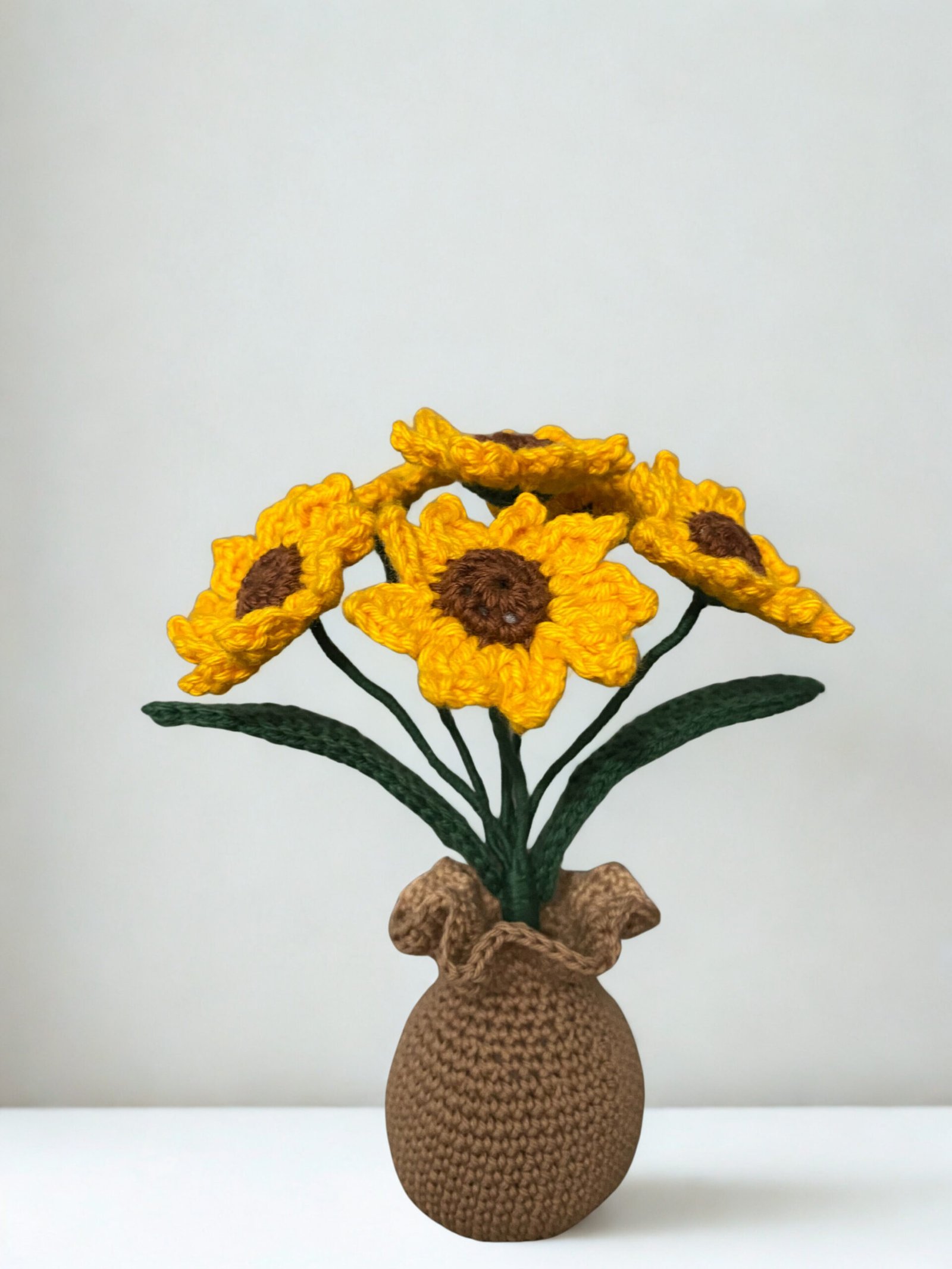 Chaque pot de fleur tournesol crochet est réalisé en petite série pour garantir une qualité artisanale.